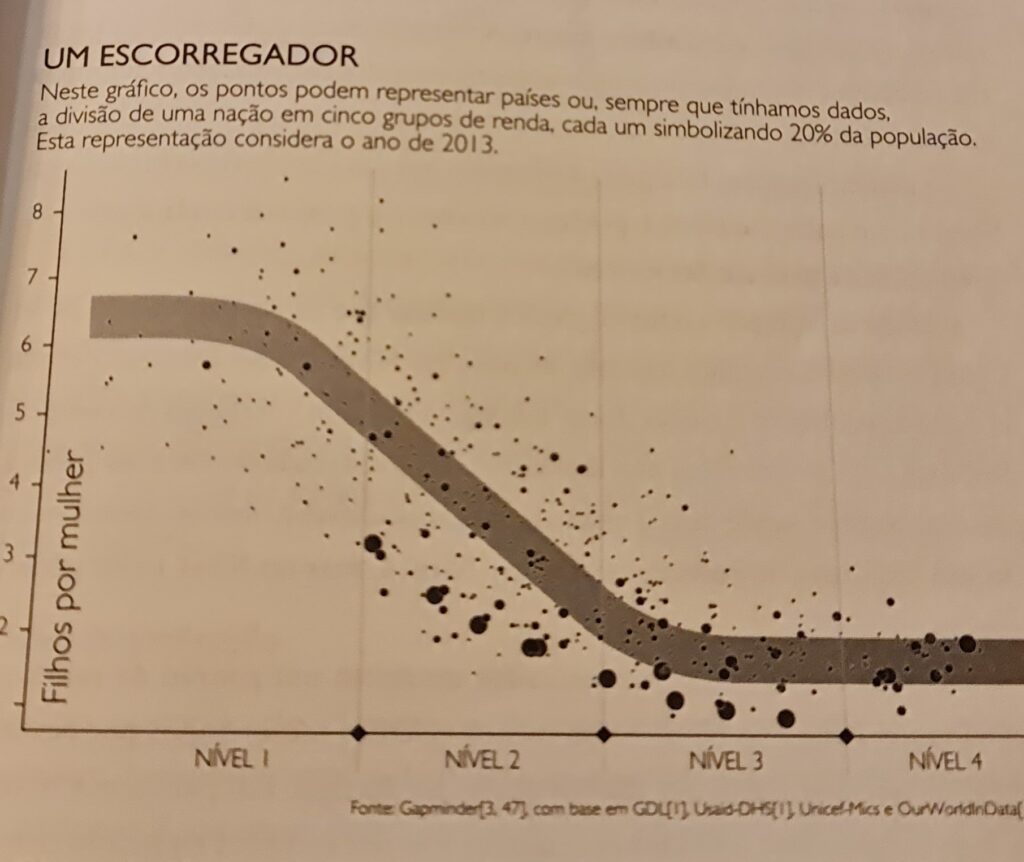 Se tomarmos as populações nos níveis 2, 3 e 4, encontraremos uma média de 2 filhos/mulher, que é o indicador que mantém a estabilidade populacional. Na população do nível 1, esse índice é de 5 filhos / mulher. Cada geração mantida na extrema pobreza produzirá uma geração seguinte ainda maior.