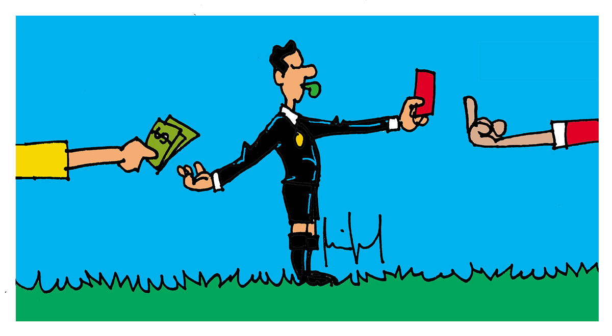 Uma prova do desprezo dos brasileiros pelos árbitros é o famoso cântico “Ei, juiz, vai tomar no c(*)”, entoado entusiasticamente por homens, mulheres e crianças em todas as competições esportivas (já vi até em vôlei feminino). Veja bem, se você gritar “bicha!” para o goleiro adversário, corre risco de ser condenado a cem anos de cadeia, mas para falar mal do juiz vale qualquer coisa. Nunca vi uma entidade de direitos humanos se manifestar a favor deles. São ladrões, a escória da espécie humana, e merecem todo o castigo do mundo.