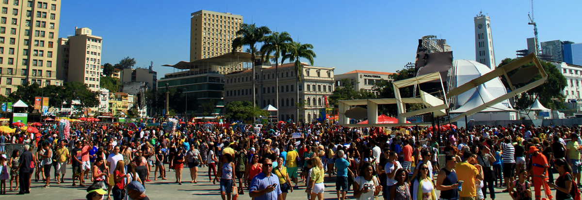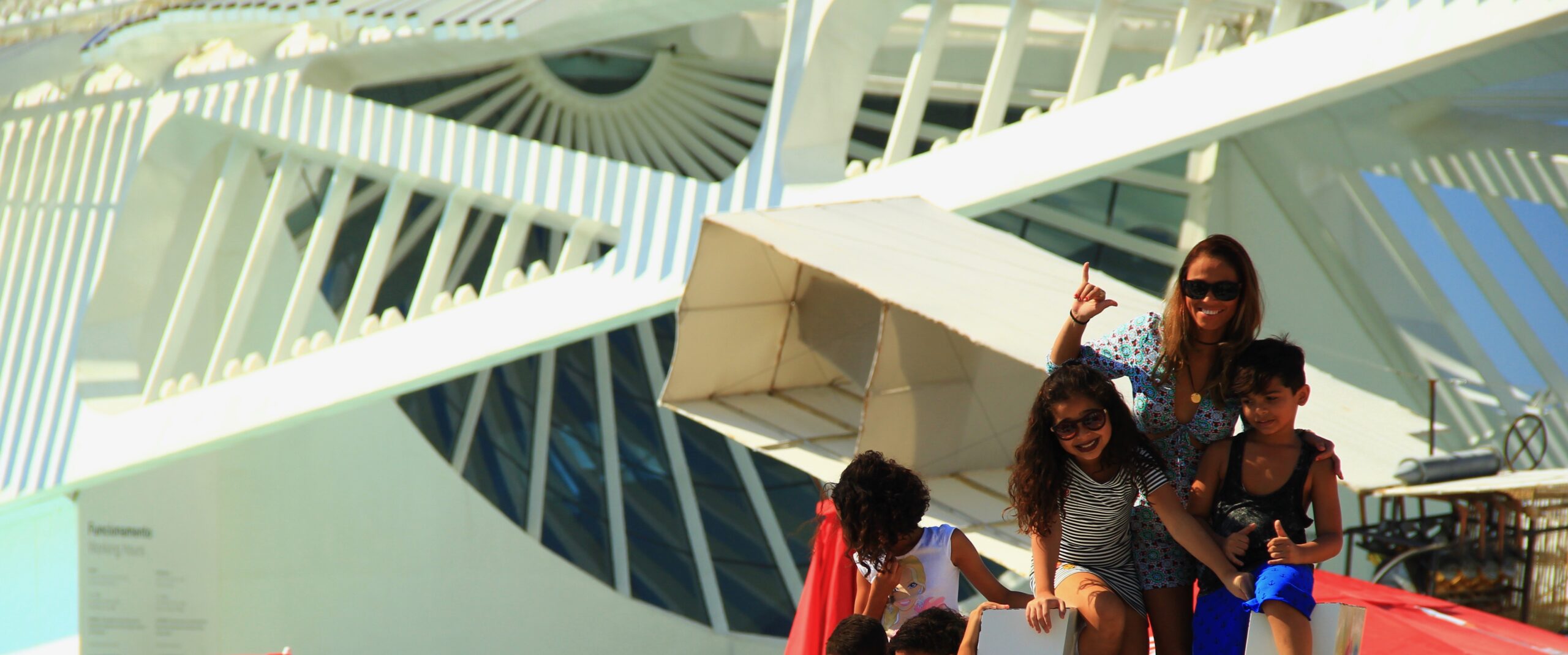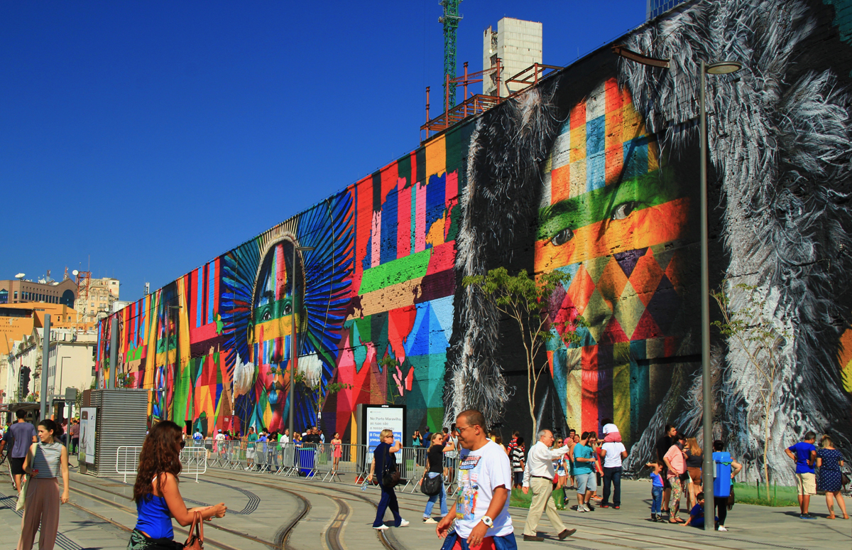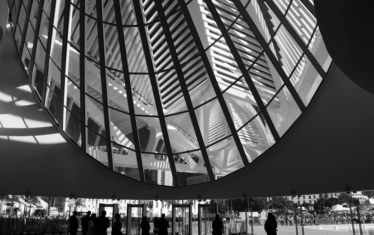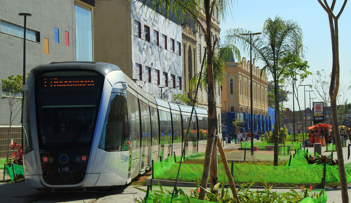 Fomos no recém inaugurado VLT-Veículo Leve sobre Trilho, um bonde high-tech que sai do aeroporto Santos Dumont e vai até a principal obra “não-esportiva” da cidade para os jogos, o chamado Porto Maravilha, a revitalização urbana da Região Portuária da cidade, que seria o coração turístico do evento, englobando atrações como o calçadão do Boulevard Olímpico, o Museu do Amanhã, o AquaRio, o mural Etnias, o MAR-Museu de Arte do Rio e a roda-gigante RioStar.