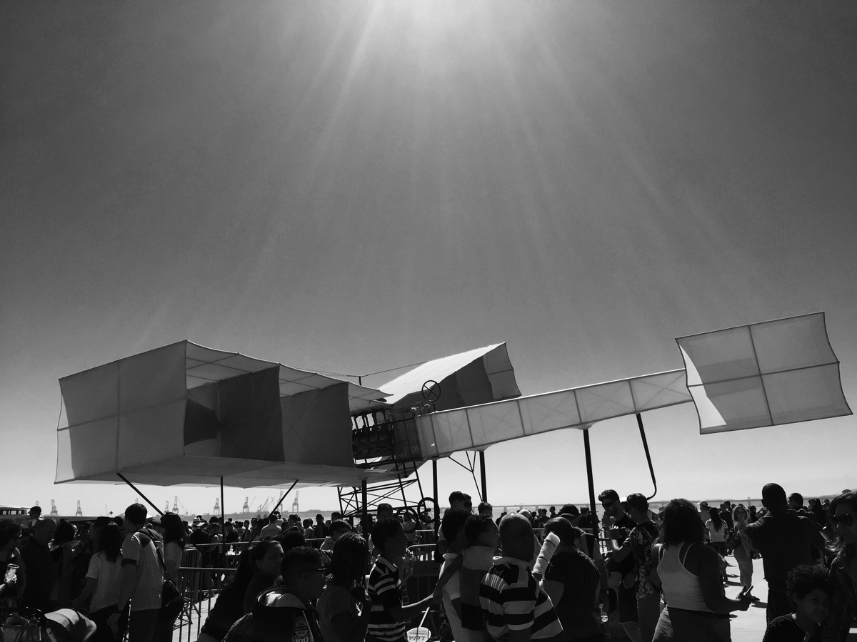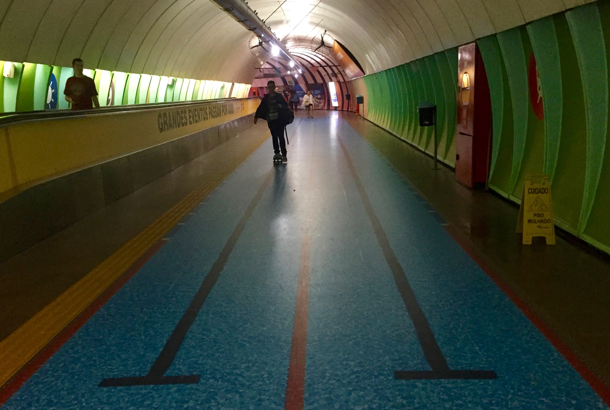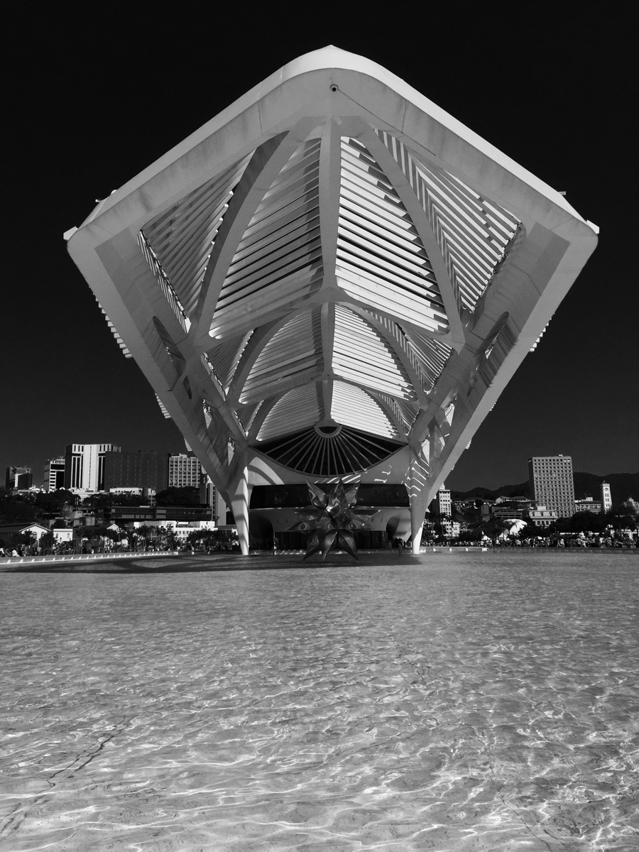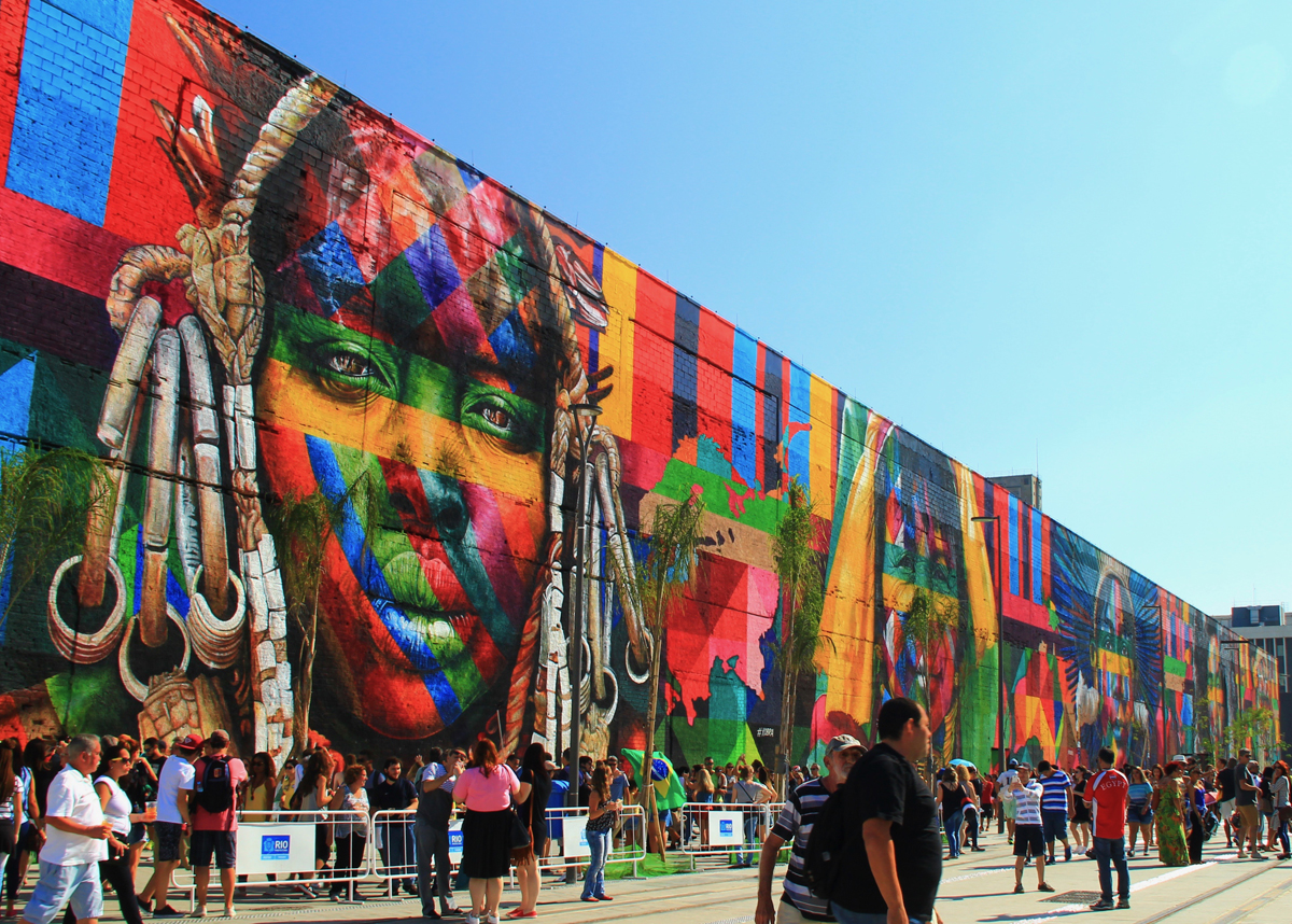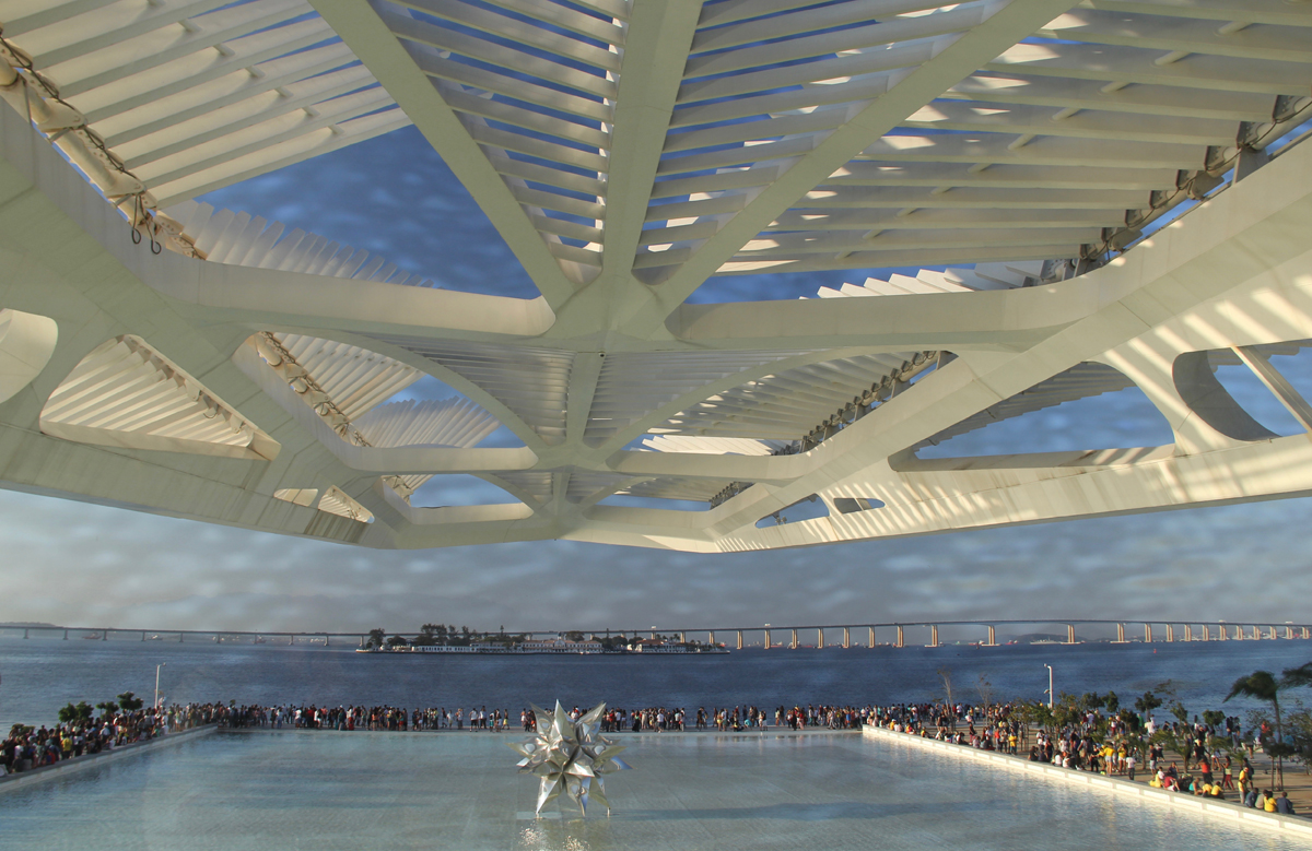Fomos no recém inaugurado VLT-Veículo Leve sobre Trilho, um bonde high-tech que sai do aeroporto Santos Dumont e vai até a principal obra “não-esportiva” da cidade para os jogos, o chamado Porto Maravilha, a revitalização urbana da Região Portuária da cidade, que seria o coração turístico do evento, englobando atrações como o calçadão do Boulevard Olímpico, o Museu do Amanhã, o AquaRio, o mural Etnias, o MAR-Museu de Arte do Rio e a roda-gigante RioStar.