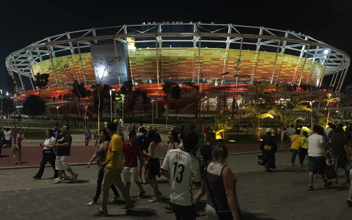 Uma diferença fundamental, entre Olimpíada e Copa do Mundo, é que, no caso da competição de futebol, o tal “Padrão FIFA” é um “me engana que eu gosto”. Na Copa 2014 foram 64 partidas de seleções de apenas 32 países, distribuidas ao longo de 1 mês, por 12 cidades. Foram prometidas inúmeras obras de infraestrutura que seriam o “legado” para o país. Muitas delas não foram entregues. E, na real, não fizeram falta: em um país como o Brasil, o que era necessário mesmo, para a Copa, era ter os estádios dentro do tal “Padrão FIFA” construídos ou reformados, um número acima do ideal (8) mas abaixo do que o governo federal na época desejava por motivos extra-e$portivo$ e não-republicano$ (16). Em termos de número de turistas e espectadores para assistir os jogos era algo que as sedes já estavam acostumadas a lidar em qualquer clássico regional de casa cheia. E, em termos de deslocamento, nada que feriados municipais nos dias dos jogos não resolvessem …