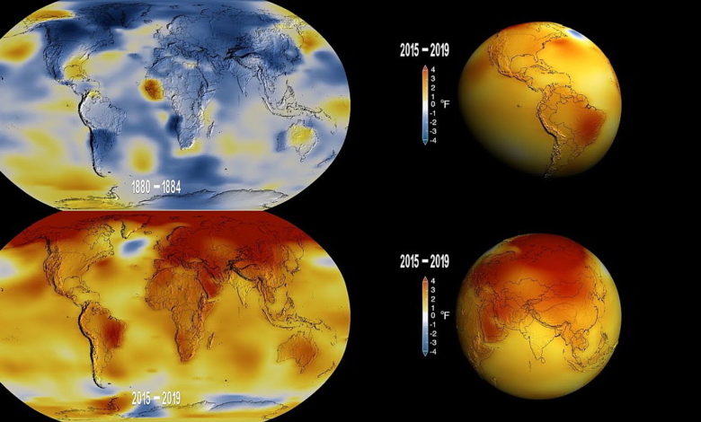 Esse vídeo da NASA mostra a evolução da anomalia de temperatura entre 1880 e 2019, sobre o período 1951-1980.