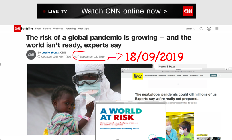 Essa matéria da CNN sobre pandemia era baseada em relatório da OMS, que analisou 1483 (!) epidemias que aconteceram entre 2011 e 2018. As análises foram reunidas num reporte chamado “A WORLD AT RISK https://apps.who.int/gpmb/assets/annual_report/GPMB_annualreport_2019.pdf,. O reporte alertava para a ciclotimia na preparação do mundo para pandemias: “ Por muito tempo, permitimos um ciclo de pânico e negligência no que diz respeito a pandemias: intensificamos os esforços quando há uma ameaça séria e, em seguida, rapidamente os esquecemos quando a ameaça diminui. Já passou da hora de agir”. [Consegue imaginar olhos virando na Faria Lima, Wall Street ou London City? – eu sim].