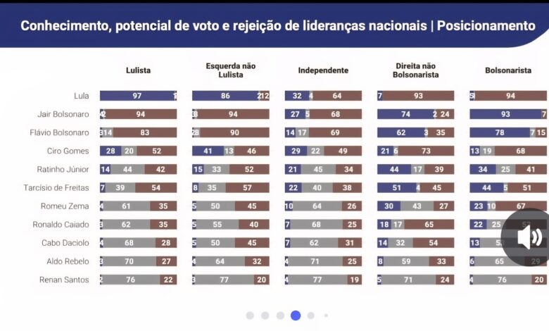 Quando Ciro Gomes entra em um dos cenários, ele desidrata fortemente a candidatura de Painho, que sai do patamar de 40% e recua para algo mais próximo de 30%.